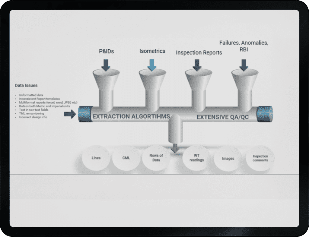 Extract solves the problem of high volumes of multiformat, poor quality, unstructured and decentralized data gathered during inspection and maintenance activities by converting into structured, centralized and high-quality information which then can be used for better decision making and digitization of assets.